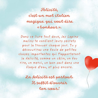 In this sweet little book, the Lapins Malins share their secrets for finding it every day. You’ll discover a whole host of small but important things that will bring you felicità, like a cuddle, a burst of laughter, a thank you, a big jump into a puddle, and much more.